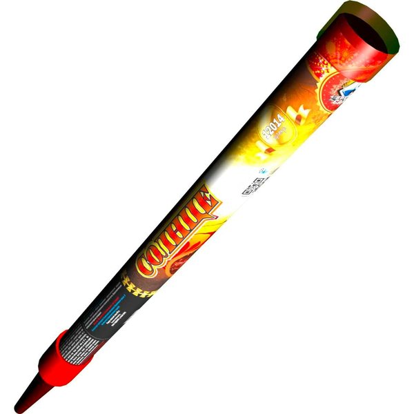Связка 5 римских свечей по 8 выстрелов. Разноцветные кометы разрываются сферами из: 1. серебряных форсов; 2. зеленых огней; 3. синих огней; 4. красных огней; 5. белых мерцающих огней; 6. зеленых и фиолетовых огней; 7. красных и зеленых огней; 8. синих и белых мерцающих огней.